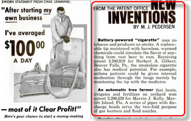 Об изобретении Герберт А. Гилберта была тогда напечатана заметка в декабрьском издании 1965-го года журнала "Популярная Механика" - Новая бездымная сигарета без табака.
